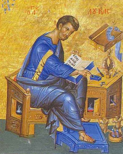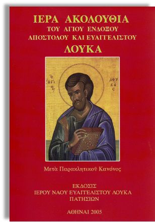 “᾿Απόστολε ῞Αγιε καί Εὐαγγελιστά Λουκᾶ, πρέσβευε τῷ ἐλεήμονι Θεῷ, ἵνα πταισμάτων ἄφεσιν, παράσχῃ ταῖς ψυχαῖς ἡμῶν”.